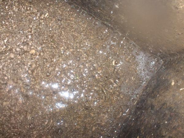 La foto que te envio es una foto con el fondo oscuro donde se ve el movimiento del agua y las burbujas que se crean en la esquina y el reflejo de la luz sobre el agua.