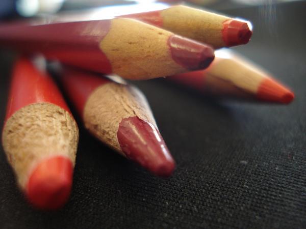 La verdad es que esta vez le di muchas vueltas a la cabeza para responder a la imagen..y pens茅 en un ojo (que era lo primero que se me vino a la cabeza cuando vi la figura, por su forma) pero despu茅s me decant茅 mas por el color y decid铆 fotografiar unos lapices rojos de distintas tonalidades; al ver la figura redonda, sin imperfecciones quise contrastar con la rugosidad de los lapices que tienen antes de llegar a la punta (creo que podr铆a denominarse con el valor de vibraci贸n), tambien he querido jugar con el enfoque, uno de los lapices est谩 mejor enfocado para resaltar el detalle de rugosidad.